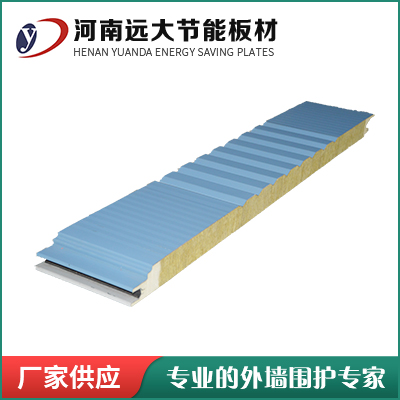 上壓型鋼板、優(yōu)質(zhì)巖棉材料、下壓型鋼板、兩側(cè)為聚氨酯。