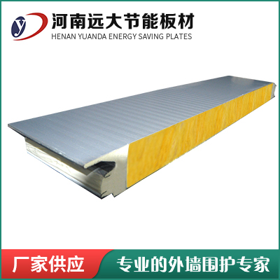 上壓型鋼板、優(yōu)質巖棉材料、下壓型鋼板、兩側為聚氨酯。