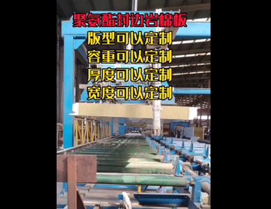我們公司引進意大利賽浦連續(xù)生產(chǎn)線,采用了六組份在線工業(yè)微機自動操作(SIEMENS)混合澆注技術(shù)。生產(chǎn)流程分為開卷覆膜—壓制成型—鋼板預(yù)熱—高壓發(fā)泡—高溫固化—鋸切—板材冷卻—碼垛—自動打包等功能與一體的自動化生產(chǎn)線,年生產(chǎn)能力為130萬平方米。