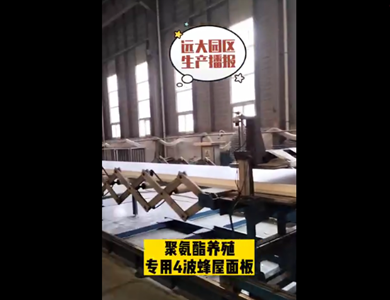 我們公司引進(jìn)意大利賽浦連續(xù)生產(chǎn)線,采用了六組份在線工業(yè)微機(jī)自動(dòng)操作(SIEMENS)混合澆注技術(shù)。生產(chǎn)流程分為開(kāi)卷覆膜—壓制成型—鋼板預(yù)熱—高壓發(fā)泡—高溫固化—鋸切—板材冷卻—碼垛—自動(dòng)打包等功能與一體的自動(dòng)化生產(chǎn)線,年生產(chǎn)能力為130萬(wàn)平方米。